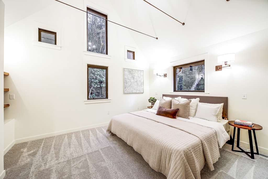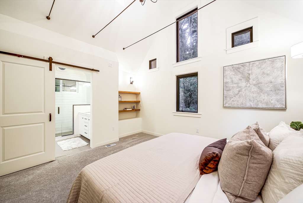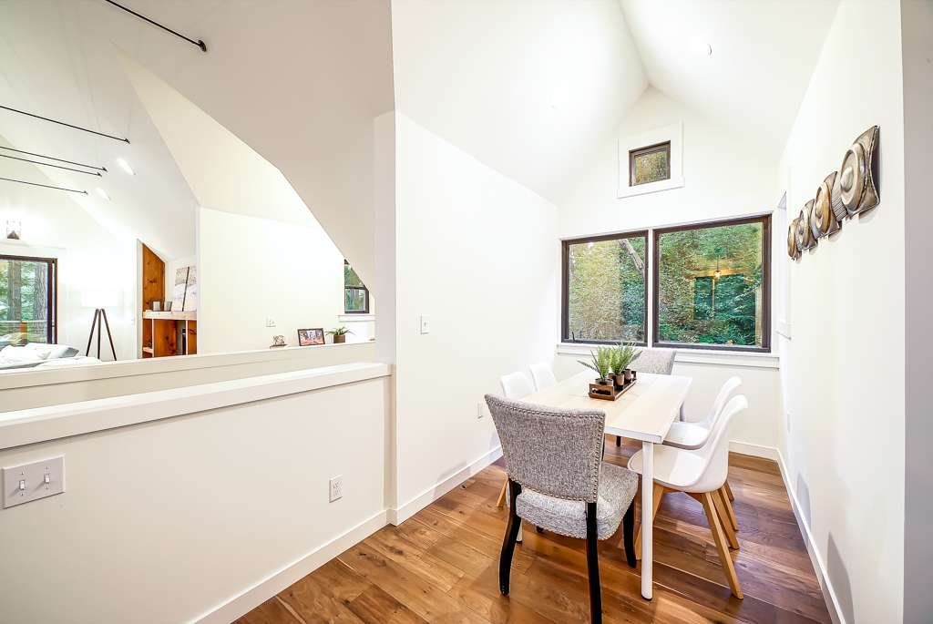 The renovation preserves the cabin’s natural aesthetic while introducing contemporary updates to the interior, including a fully remodeled kitchen, cozy bedrooms, and updated bathrooms. The living spaces are designed to maximize comfort and style, blending warm wood tones with modern finishes to create a serene and inviting atmosphere.