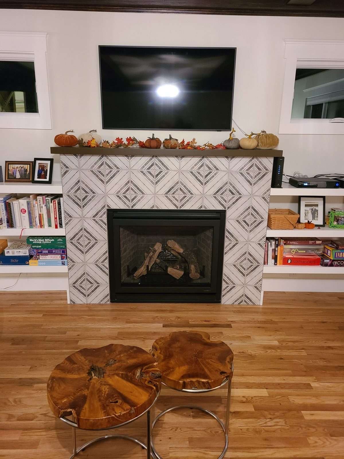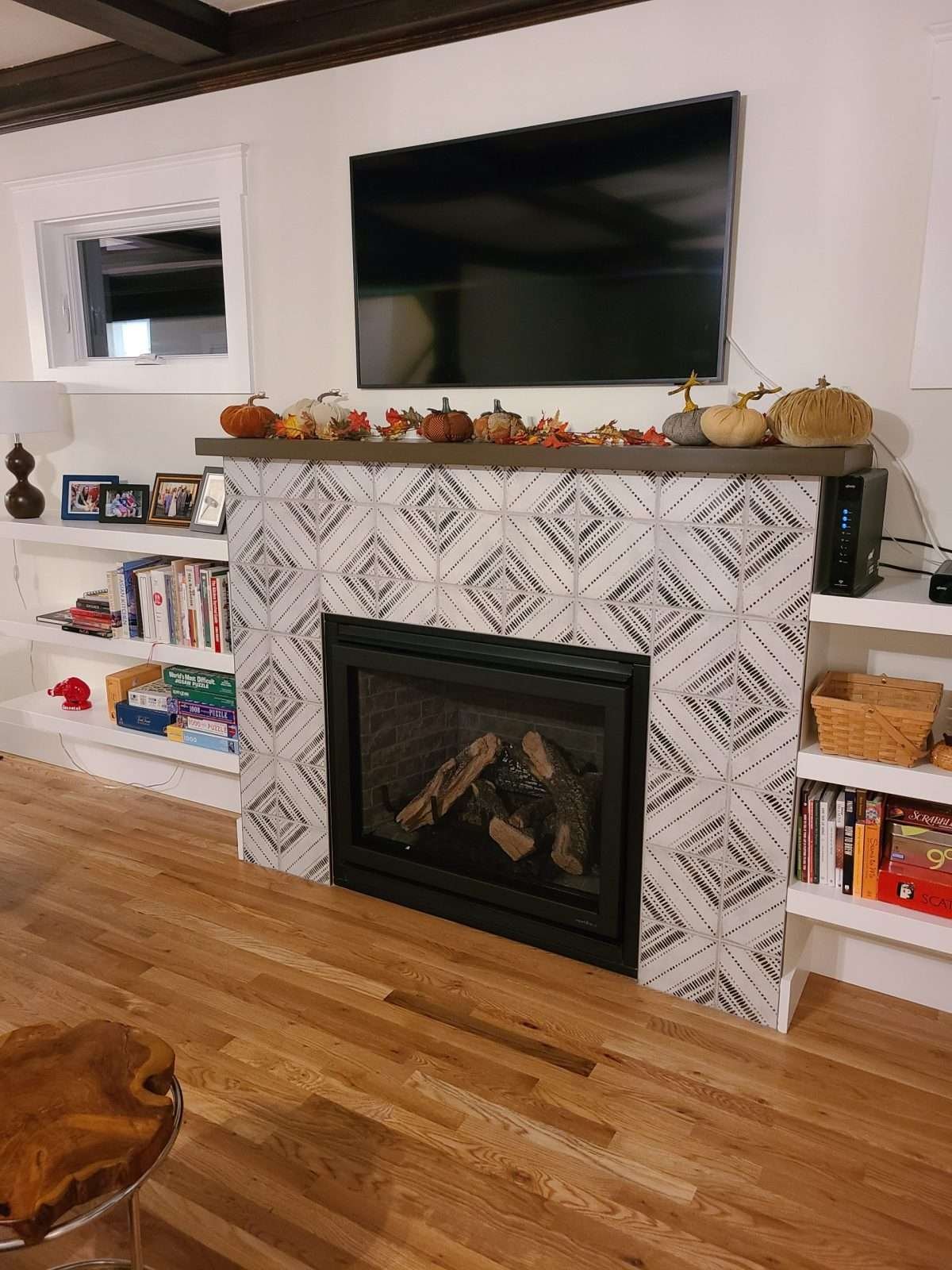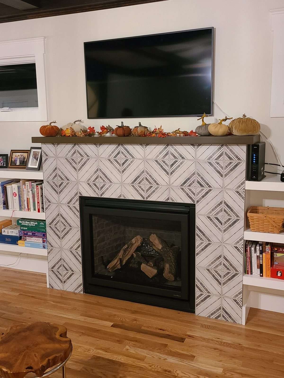 Stylish Fireplace Redesign with Modern Tile Work