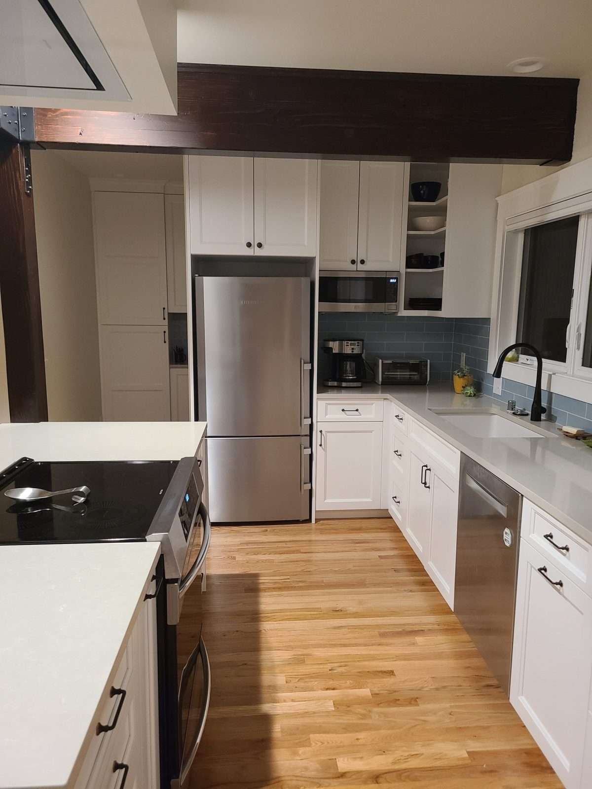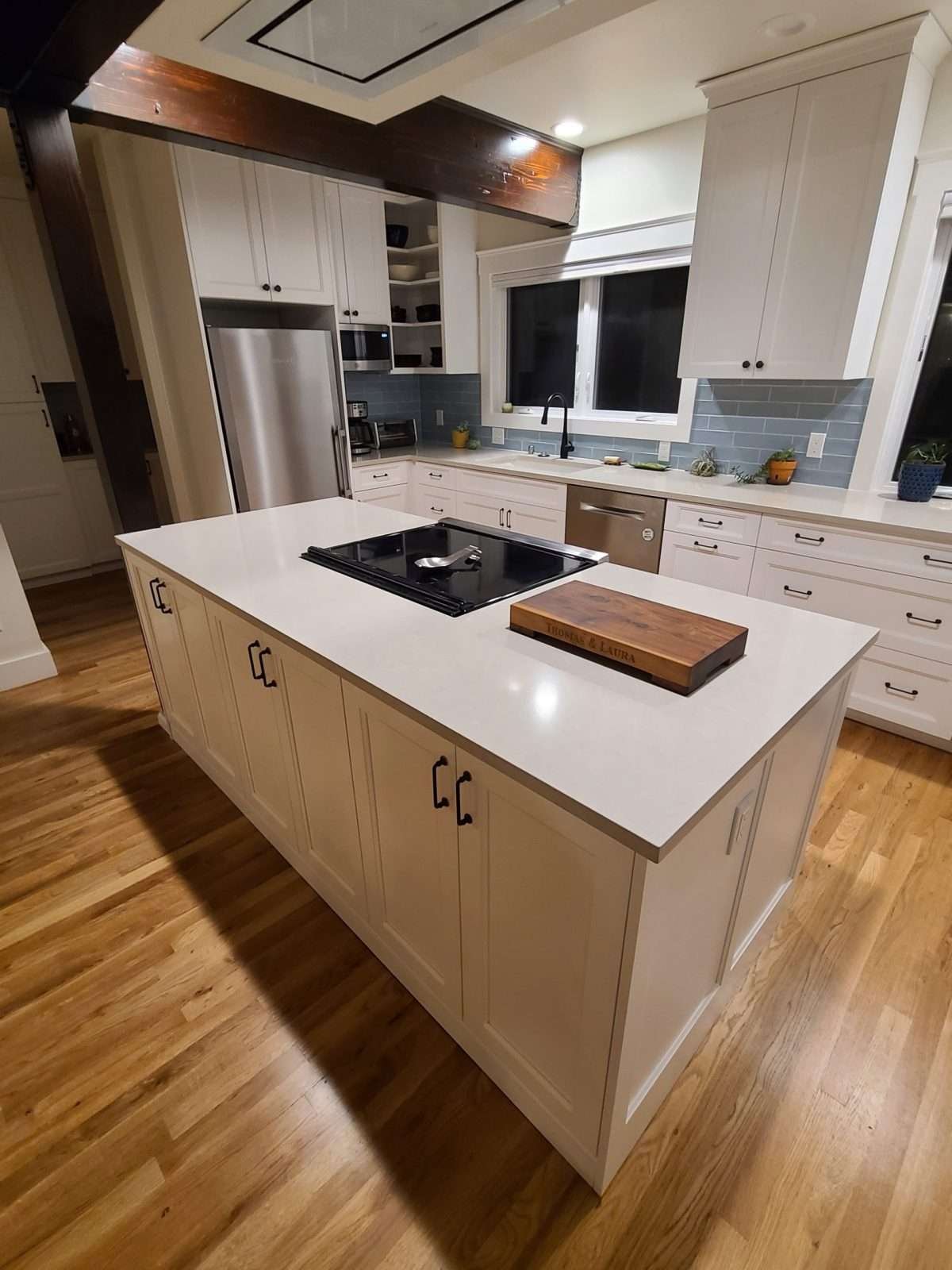 This full kitchen renovation project exemplifies how a well-executed remodel can transform the heart of the home into a stylish and highly functional space. The design features sleek cabinetry, modern hardware, and a cohesive color palette that enhances the overall aesthetic.