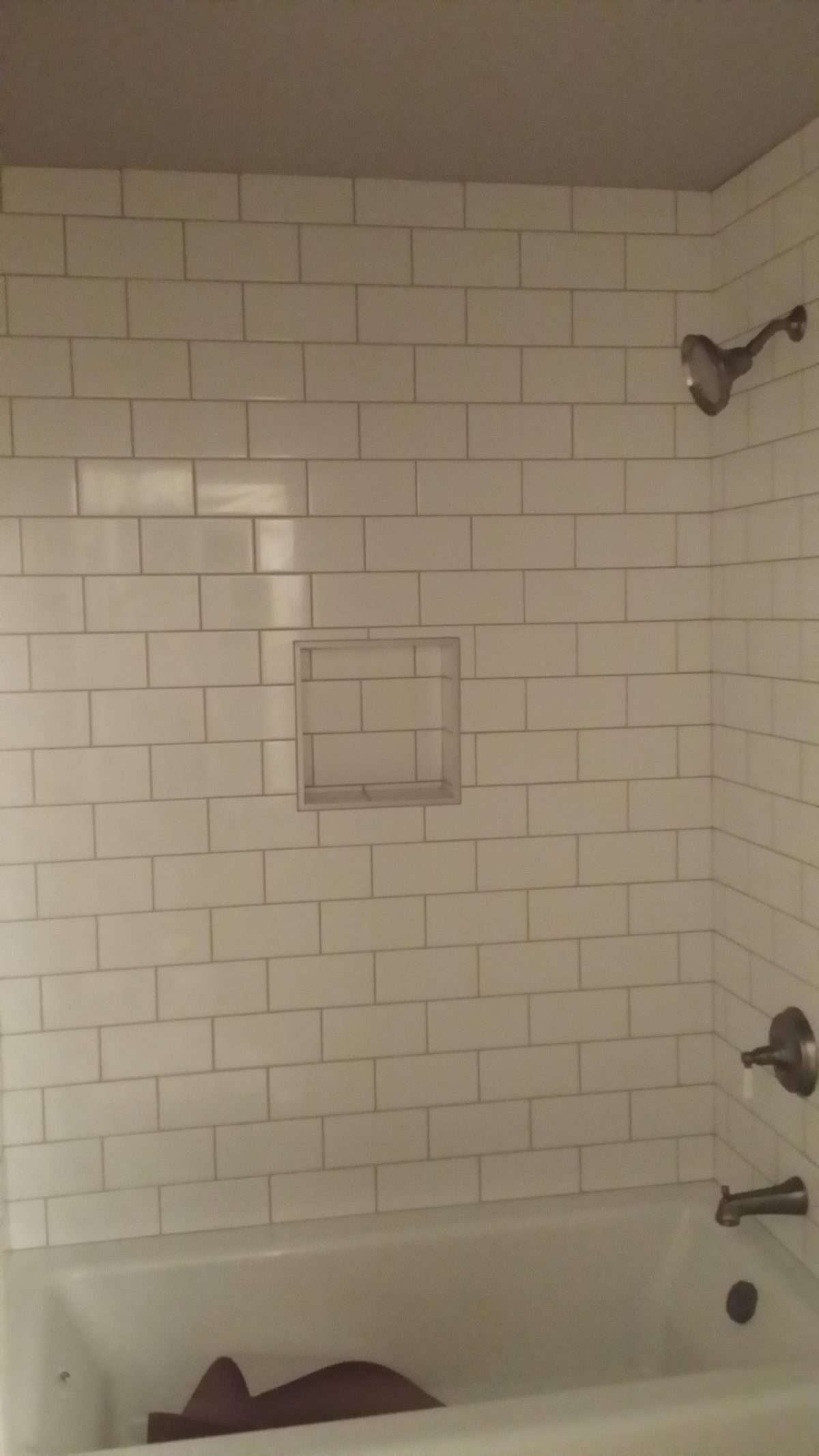 This timeless tile transformation project exemplifies the enduring appeal of classic bathroom design. Featuring pristine white subway tiles, meticulously installed to create a clean and cohesive look, this project highlights the simplicity and elegance that never goes out of style.